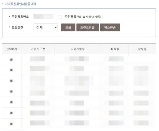 홈페이지에 접속해 공동인증서나 금융인증서, 간편 인증 수단으로 로그인한 후, 민원 메뉴에서 자격득실확인서를 선택하면 됩니다.