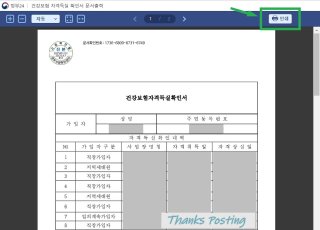 | The건강보험 모바일 앱 | 모바일 인증 | PDF 저장, 팩스 전송 |